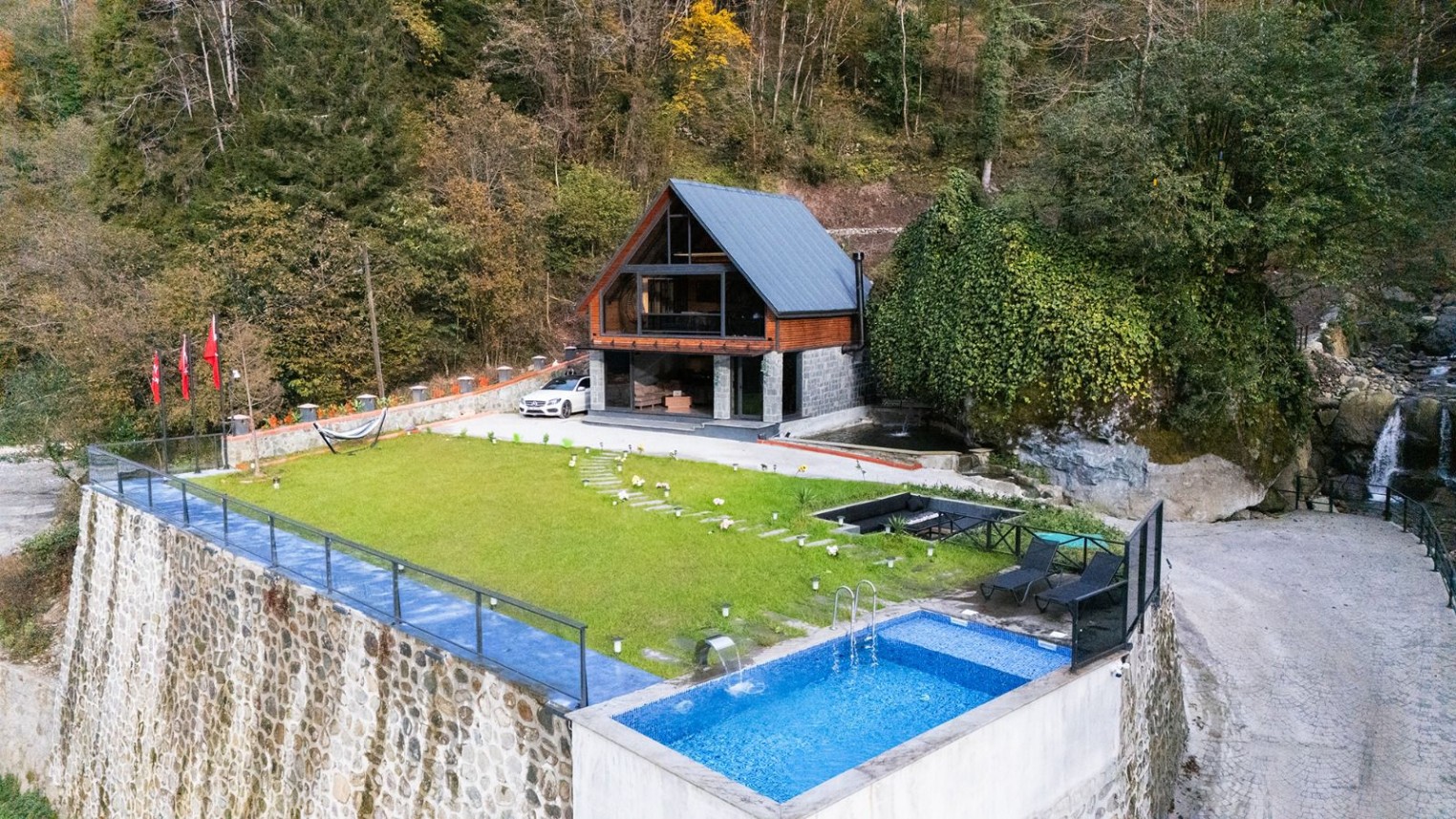 Özel yüzme havuzunda çat vadisine doğru yüzerek vakit geçirebilir, vadinin muhteşem dere manzarasını izleyebilirsiniz. Dilerseniz villa terasında özel yemeklerinizi yiyebilir, keyifli bir akşam geçirebilirsiniz.